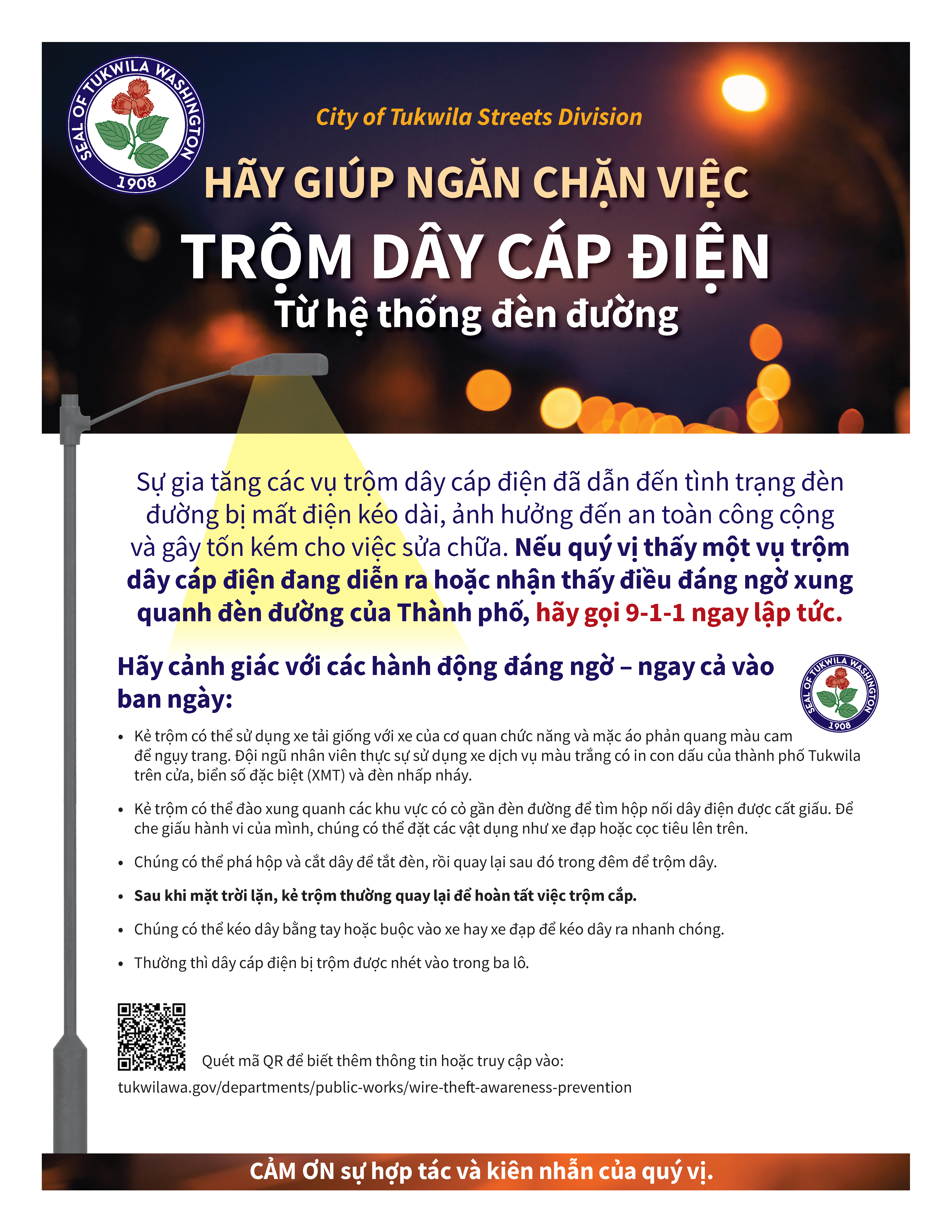 Preventing Copper Theft and Streetlight Vandalism in Tukwila