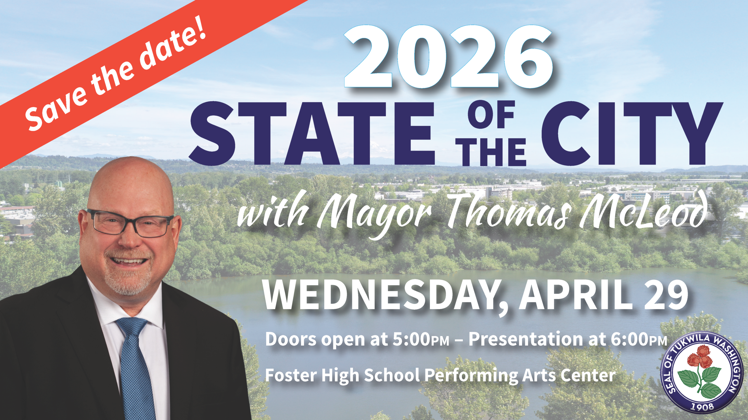 I am excited to invite you to my second annual State of the City address on Wednesday, April 29, at the Foster High School Performing Arts Center. This event is an opportunity for me to connect directly with the Tukwila community and share how our city is doing, where we are headed, and how we can continue working together.